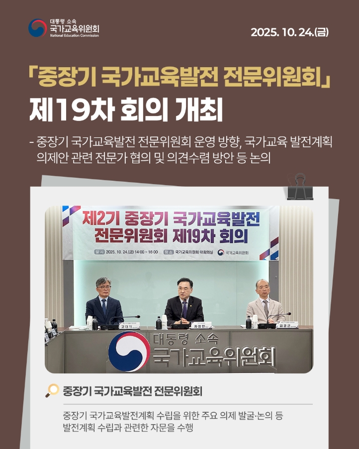 중장기 국가교육발전 전문위원회 운영 방향, 국가교육 발전계획 의제안 관련 전문가 협의 및 의견수렴 방안 등 논의