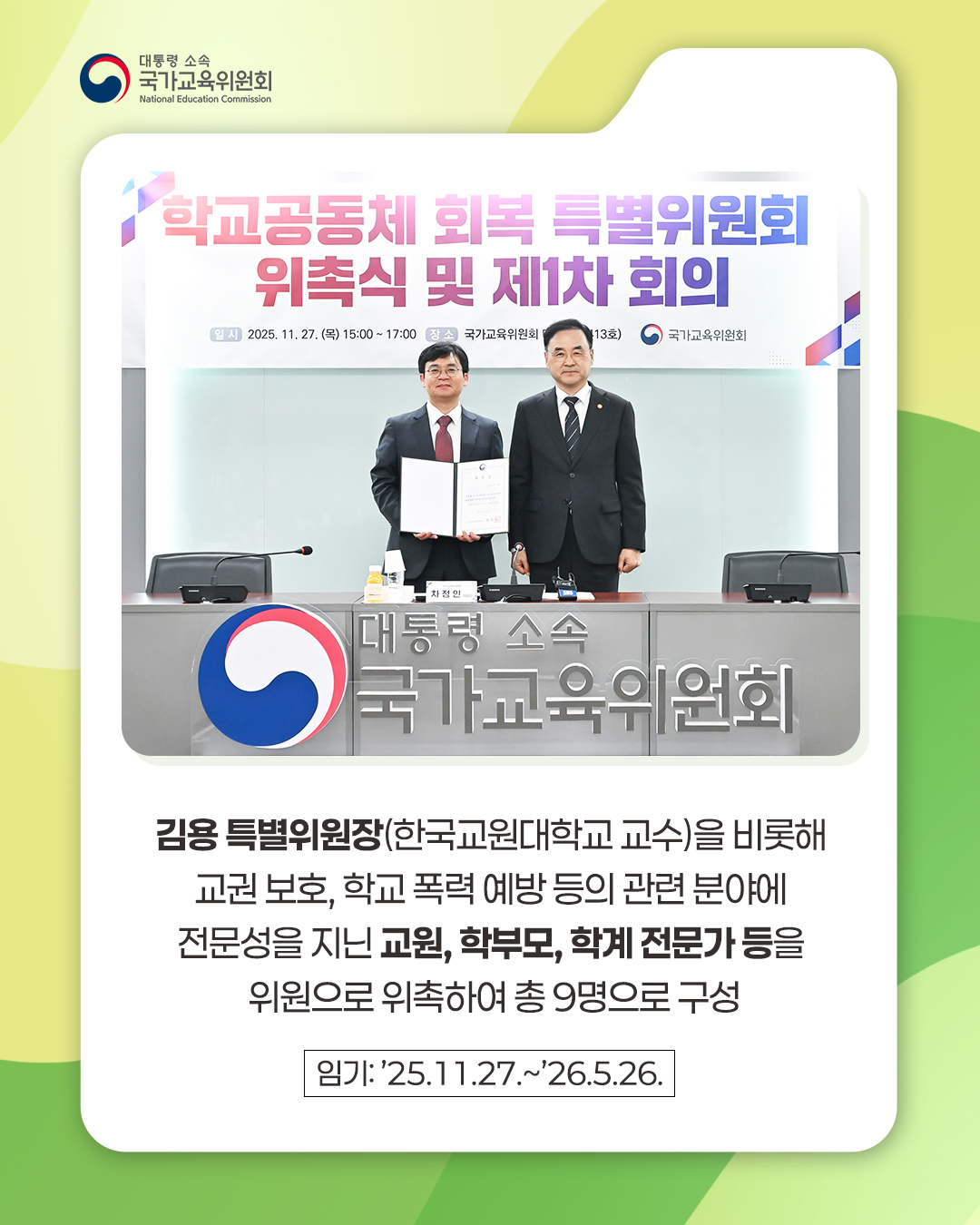 국가교육위원회 <학교공동체 회복 특별위원회> 위촉식 개최('25. 11. 27.)