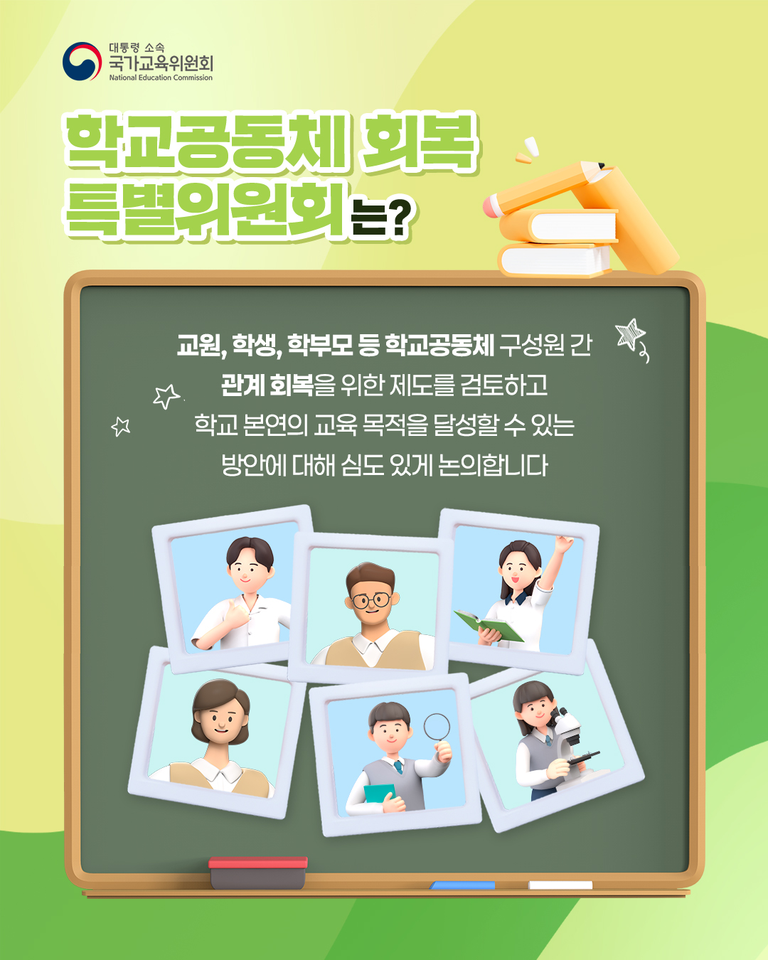 교권 보호부터 학교폭력 예방까지, 서로 존중하고 성장하며, 더 큰 배움이 있는 학교가 될 수 있도록 국가교육위원회가 함께하겠습니다!